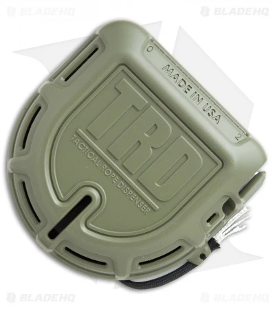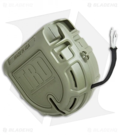 This Tactical Rope Dispenser comes in an OD green case with 50 ft. of black 550 paracord. The Atwood Rope TRD was created by a Special Ops paratrooper to provide a quick, tangle-free option for delivering paracord when you need it. It features a rugged impact resistant case and a built in high carbon cutting blade that eliminates the need for any additional tools. Item includes a heavy duty belt clip that attaches to the hip for fast one-handed operation.