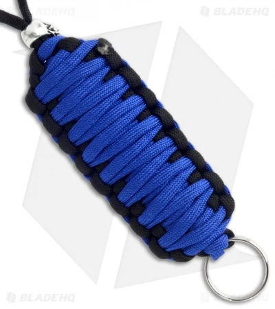 Blue & Black 550 paracord tied lanyard fob with skull bead and split ring. This lanyard has many uses, it can be used as a neck lanyard for your badge or with a neck knife, and some will find it useful to attach to bags and packs as survival gear. The paracord fob is triple cobra tied, 1-1/2″ wide and 4-1/2″ long, with approximately 12-15 feet of paracord. The neck line length is 24 inches and total weight is 1.2 ounces.