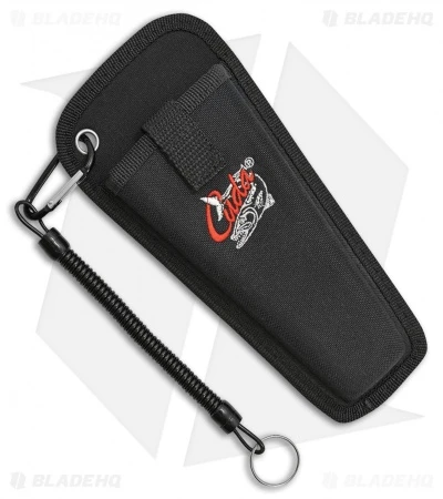 Camillus Cuda Sheath and Lanyard is a nylon belt sheath and includes a black cord lanyard.