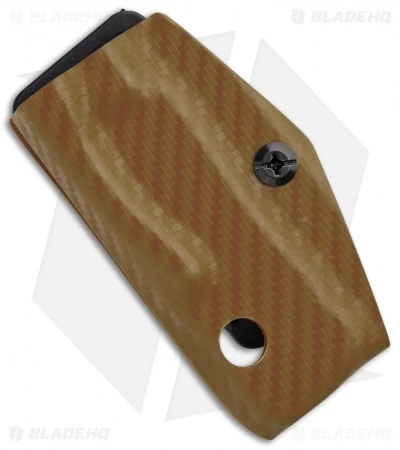 This Clip & Carry sheath was made to fit the Leatherman Skeletool. This model is made from tan carbon fiber print kydex.