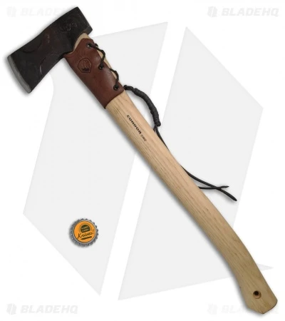 The Condor Cloudburst is a sturdy, dependable axe measuring 23″ overall. Its head is forged from 1060 high carbon steel with a natural finish. The smooth American Hickory handle is comfortable, durable, and features a leather guard near the head. The Cloudburst includes a hand crafted welted leather sheath.