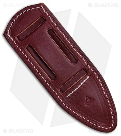The Delta Sheath Delta Shield is a premium leather sheath. This one has a burgundy color. It’s built for either vertical or horizontal carry, and fits knives with blades in the 4″-5″ length. This premium sheath is worthy of the nicest knives there are.