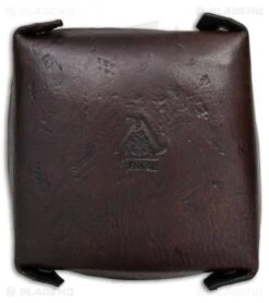 This small leather tray from Fire Hall Knife and Leather features an antique dye with brass snap clasps.