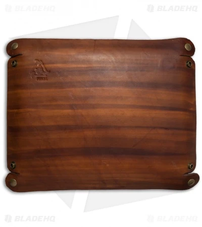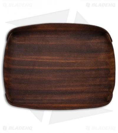 Valet trays offer a stylish and functional way to store your keys, knives and EDC pocket tools at the end of the day. This large leather tray from Fire Hall Knife and Leather features a dark woodgrain with brass snap clasps. These trays are handmade and uncoated so they will develop a unique character as the leather is aged. Item can lay flat, or snap together on the corners to make a useful tray. Never misplace your important items again with a valet tray from Fire Hall Knife and Leather.