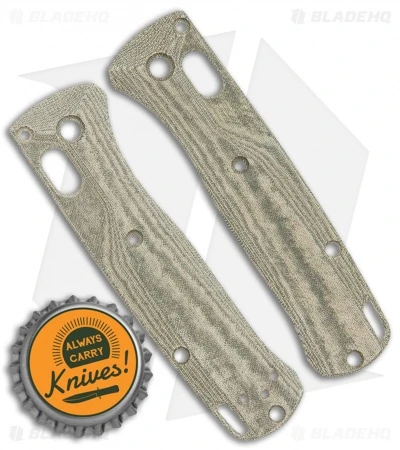 Add a custom touch to your Benchmade Mini Bugout knife with these linen micarta “Crossfade” scales from Flytanium. These aftermarket custom milled handles are a perfect fit to replace the standard Bugout scales. The scales have a visually pleasing milling pattern that also gives the knife superb grip.