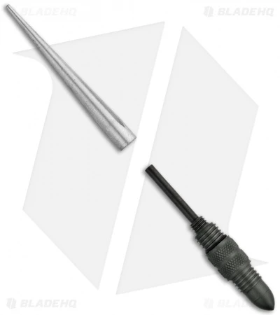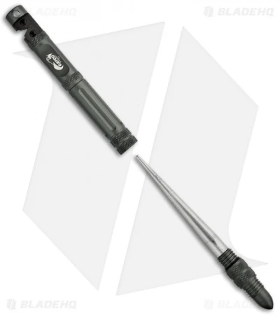 The Gatco Scepter II is a convenient design with multiple tools stored in one easy to carry tool. It features tungsten carbide sharpening elements for fast resharpening of all knives. It has a removable (threaded) tapered diamond rod for re-sharpening serrated blades and a magnesium fire starter rod for emergency use. This light weight and compact tool is perfect for hikers, bikers, campers, hunters, fishermen (and ladies), police and military professionals.