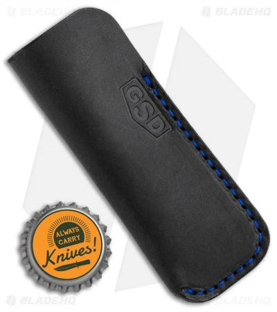 This leather sleeve from Greg Stevens Design was made for carrying slipjoint folders and other pocket knives. It’s handmade from black leather with blue stitching. This Greg Stevens sleeve is the perfect accessory for your favorite pocket knife!