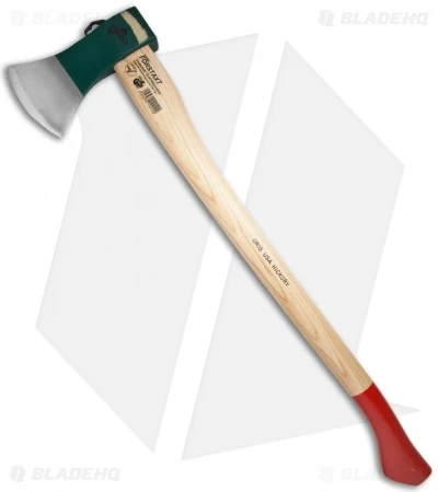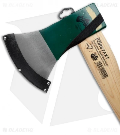 Helko is one one of the leading forgers of axes in the world. With more than 150 years experience, Helko brings it all to bear in every one of their products. This German Standard Hatchet is an excellent example of the craftsmanship and detail you can expect. The hefty, 1600 gram blade of this quality tool is made of German C45 high grade carbon steel that is drop forged, heat treated, and oil hardened. The handle is hand crafted in Switzerland from sustainably sourced and Forest Stewardship Council certified USA Hickory, lightly lacquered and given a red dipped grip. Comes with a black leather blade guard.