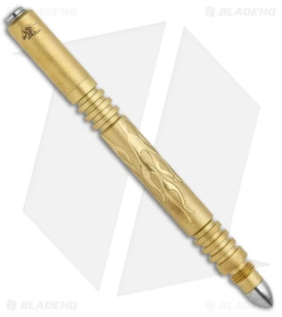 This Investigator Pen is made from brass with a bead blasted finish. This model has an engraved flame texture
