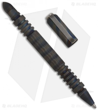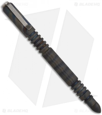The Investigator Pen is a compact self-defense implement from Hinderer Knives. It is a smaller sized tactical pen for more discreet carry but with the toughness and styling cues of his kubaton and Extreme Duty pens for a firm grip when used in a CQB role. The Investigator Pen has a threaded bullet tip that is part of the modular design so that it can be customized with other attachments to fit the user’s specific needs. The threads for the cap and bullet are course and tall to handle hard strikes. The Investigator Pen uses a replaceable Fisher Space Pen cartridge.