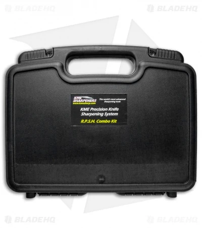 All KME Precision Knife Sharpening Systems come in a large hard case that is big enough to accommodate the base and as many accessory stones as you want to add. The cases are lined with soft foam in both the base and lid to protect your sharpener and accessories. An additional layer of stiffer foam has cut-outs for the stone carrier, stones, and oil or water bottles and holds everything securely in place when the lid is closed.