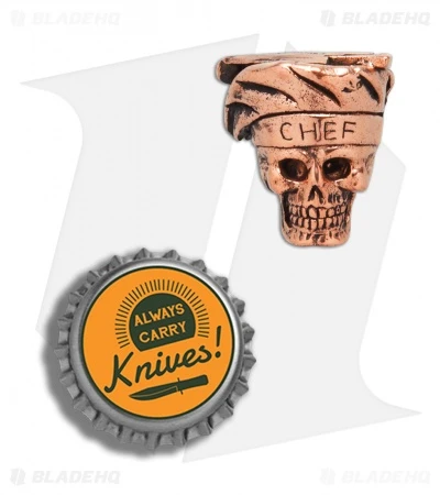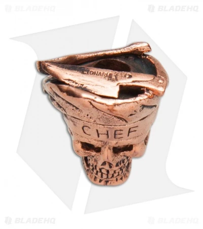 This Lion Armory Chef bead is made from solid copper. The Chef bead offers an impressively detailed design, complete with an ample lanyard hole opening. Add a custom accent to any knife with the chef bead from Lion Armory.