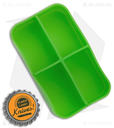 Designed for use with the Maratac industrial strength, food grade stainless steel survival tins (or tins of relatively the same size), this insert has has four compartments. Keep your small items organized within the tray, and afterwards you’ll find clean up is a breeze. Silicone is non-magnetic, flame/heat-resistant, solvent resistant, and easy to clean with soap and water. High visibility “zombie” green color has excellent real world contrast, helping with low light content identification.