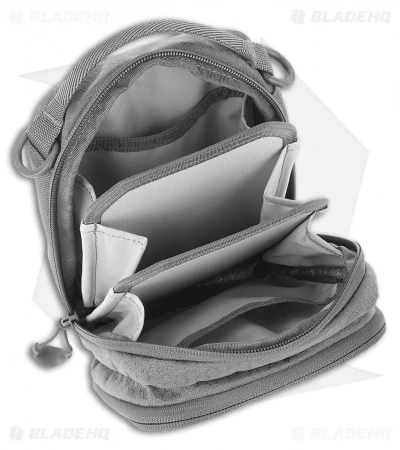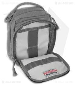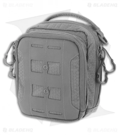 The gray AUP Accordion Utility Pouch is a small pouch with accordion style dividers. It has a frontal zippered compartment with elastic organization and a top carry handle made from comfortable Shapeshift™ webbing. It comes with two (2) TacTie® PJC5™ Polymer Joining Clips for modular attachment to any AGR or Legacy pack.