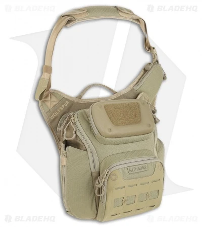 The tan Wolfspur is a crossbody shoulder bag optimized for concealed carry. The rear CCW compartment is fully loop-lined and has a 15″ zipper opening for unobstructed access. The main compartment of the pack is lockable with a padded pocket sized to fit most tablets. The Wolfspur also has a side expandable water bottle pocket that can accommodate a 32 oz. Nalgene water bottle.