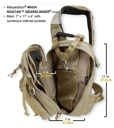 The Maxpedition NOATAK™ is the latest addition to our Gearslinger lineup. Like the Sitka and Kodiak, this pack is designed to be worn on the back and rotates 270 degrees towards the front of the body for easy access to contents; this feature is particularly useful when the pack is worn while sitting down. Exterior modular webbing allows attachment of various pouches while internal loop fields facilitate concealed carry.