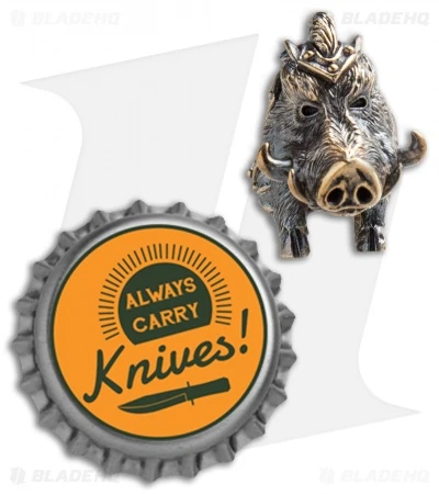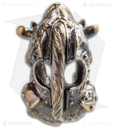 This Armored Pig lanyard bead from RUS Beads Shop is made from bronze with intricate handmade detail. The bead features two angled holes on either side of the head and a large opening to hide lanyard knots. Add this custom bead to your knife, zipper pull, or other EDC accessories to truly make them your own.