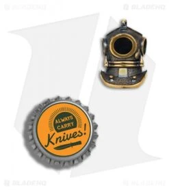 This Diving Helmet lanyard bead from RUS Beads Shop is made from bronze with intricate handmade detail. The bead features several lanyard holes on either side of the head and a large opening to hide lanyard knots. Add this custom bead to your knife, zipper pull, or other EDC accessories to truly make them your own.
