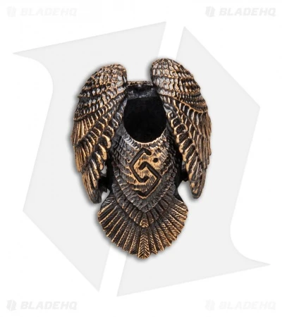 This Runic Owl lanyard bead from RUS Beads Shop is made from bronze with intricate handmade detail. The bead is easily attached to paracord lanyards and features a large opening at the bottom to hide knots. Add this custom bead to your knife, zipper pull, or other EDC accessories to truly make them your own.