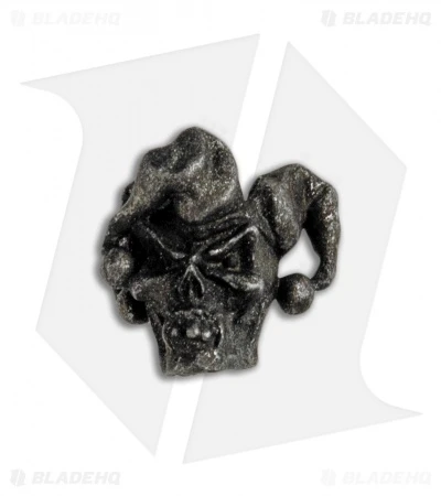 The Schmuckatelli Jester Skull lanyard bead is made from darkened pewter. It has a 1/8″ hole in the center that will fit most lanyard cords. This Schmuckatelli skull bead offers a great way to customize all of your knives and gear.