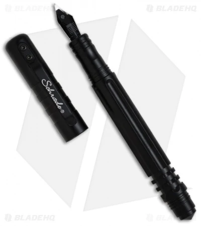 This Schrade Tactical Pen features both a fountain tip as well as a regular rolling ball tip to suit your writing style! It is an awesome pen that writes great while also capable of being used as a self-defense implement. The black anodized body and cap are 6061 aluminum. The body has grooves for a secure grip and breaker tip. The cap screws securely on and off both ends. The pocket clip adds convenience for everyday use.