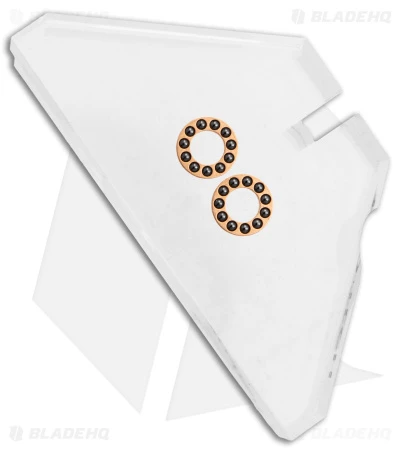 Skiff Made Blades make these bearings and they come in a set of two. Cage bearings like these give support to the blade as it flips and moves. The maintenance and installation processes are made more accessible because the the balls are held by a hardened race washer. Get these bearings to customize a knife or use them as replacement bearings! They are great knife accessories!