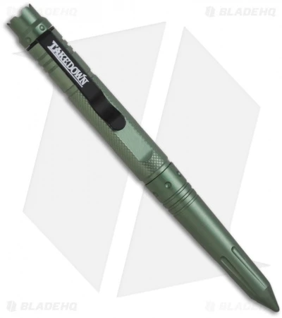 The Takedown DLX pen is a superb writing and defense implement. This DLX features a green anodized aluminum body and crown with a glow-in-the-dark insert on top. Pocket clip for easy carry. The fluted grip aids in writing while the knurled section provides a solid gripping surface for defense applications. The cap pops on and off for quick and easy access. The pen writes well and includes both black and blue ink cartridges. If you need a replacement ink cartridge click here. This is another great Takedown self-defense tool in a package that makes it easy for everyday carry.