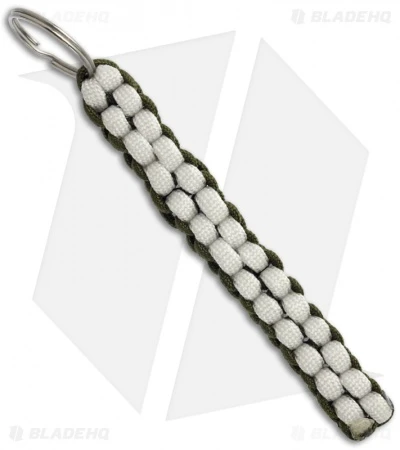 White & OD Green 550 Paracord Lanyard Keychain Boondoggle W/ Split Ring